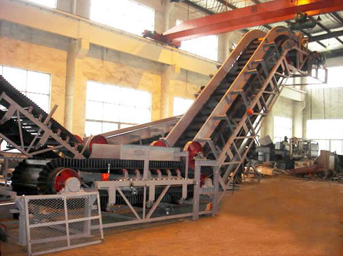 大傾角波狀擋邊帶式輸送機是一種新型的帶式輸送機,大傾角帶式輸送機具有變角容易,占地面積少、能耗省、噪音低、輸送量大、膠帶運行平穩,使用壽命長,可選機型多,總體造價低等優點。大傾角帶式輸送機廣泛用于港口、碼頭、礦山、冶金、化工、電力、煤炭、建材等部門塊狀或散狀物料的輸送。 帶寬系列有:B500,650,800,1000,1200,1400。 波狀擋邊帶式輸送機理論輸送能力 m3/h